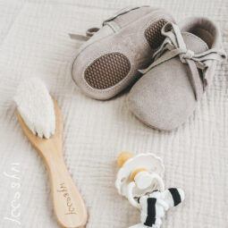 De suède baby schoentjes van Ivy and Soof zijn verkrijgbaar in drie maten en drie kleuren. De maat 0-6 maanden is geheel van suede, de babyschoentjes in maat 19 en maat 20 zijn op de zooltjes voorzien van suède in combinatie met zacht rubber. De zogeheten ‘flex zooltjes’ zijn door de combinatie van de grip pads én suède blijven de zooltjes zacht en soepel, hebben de schoentjes geen harde zool maar zijn de schoentje ideaal voor de eerste stapjes.