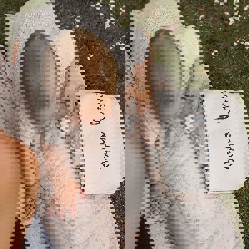 Artikelen die op verzoek zijn gepersonaliseerd kunnen niet worden geretourneerd. Twijfel je over de lay-out van de naam die je er graag op zou willen? Stuur gerust een mailtje naar info@ivyandsoof.nl zodat ik, voor het bedrukken, kan laten zien hoe de naam eruit komt te zien.